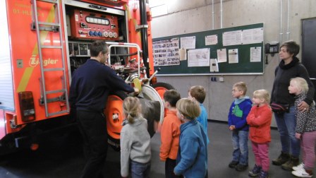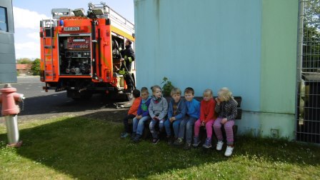 Einen spannenden Tag hat die Eichhörnchen-Gruppe beim Besuch der Feuerwehr erlebt:
